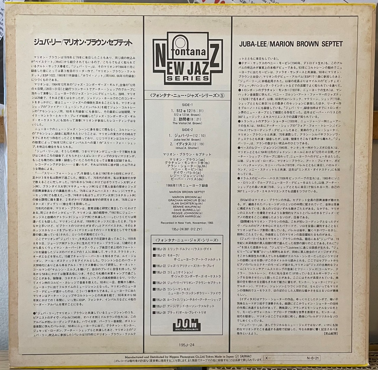 Marion Brown Septet "Juba-Lee" LP