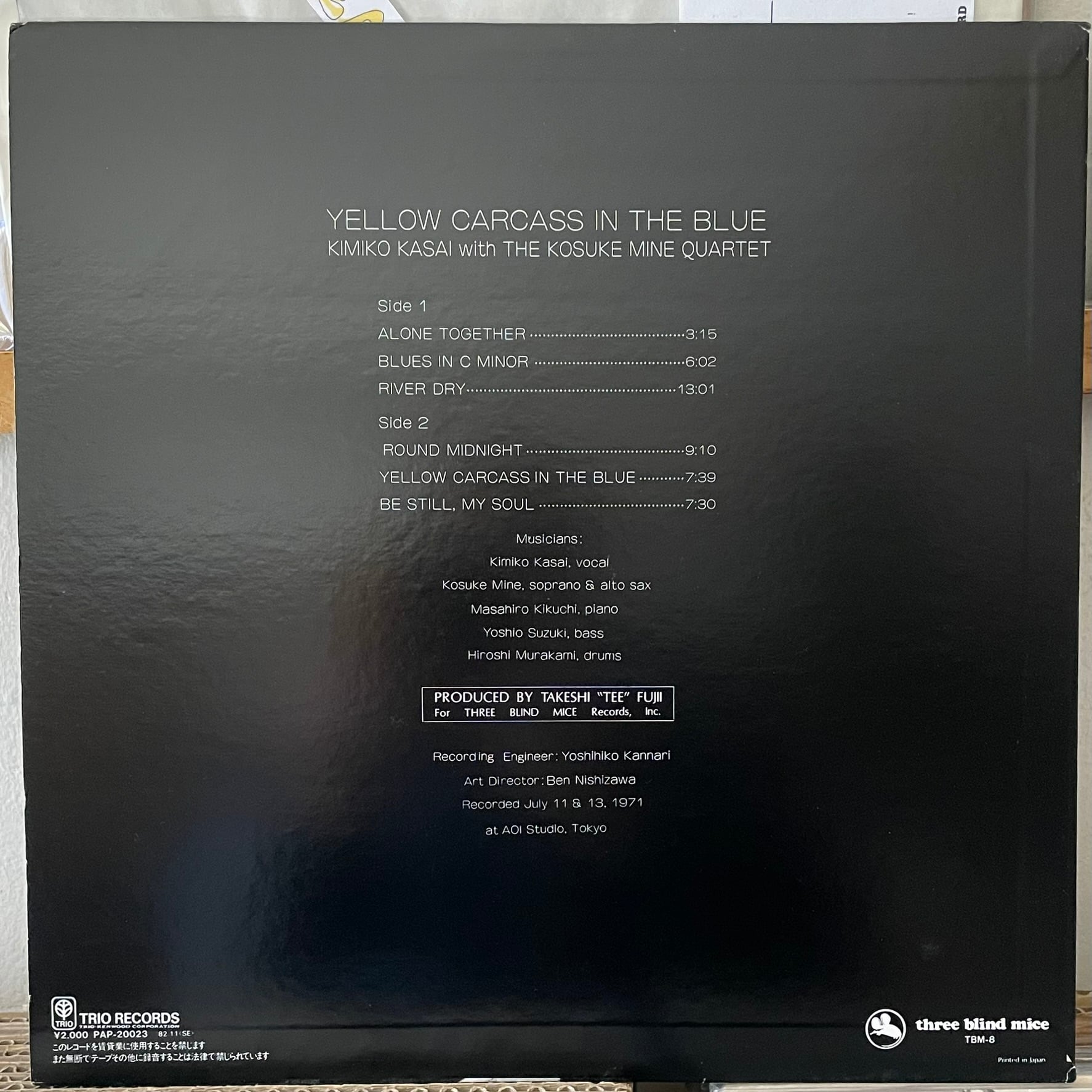 Kimiko Kasai With The Kosuke Mine Quartet "Yellow Carcass In The Blue" LP