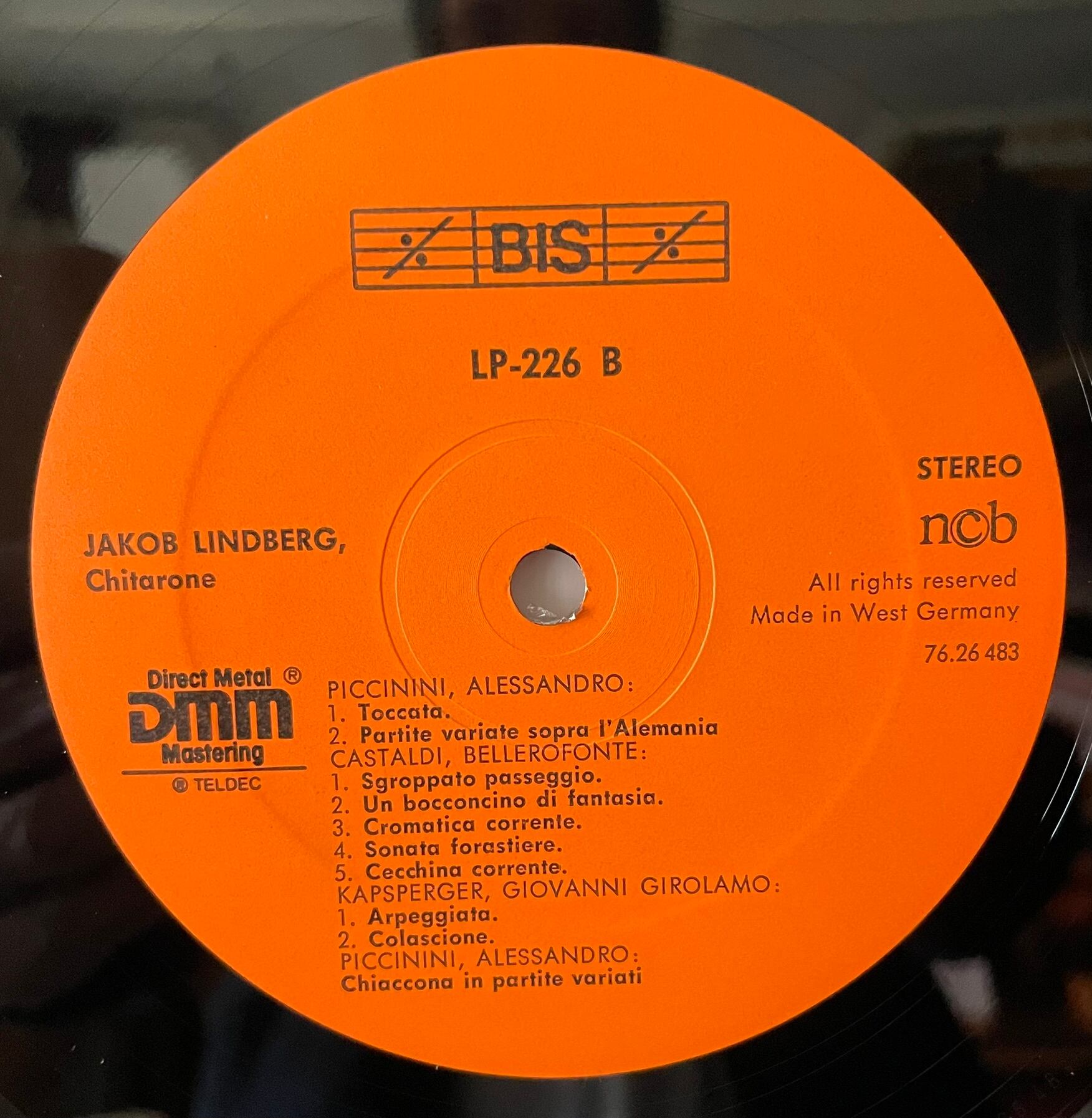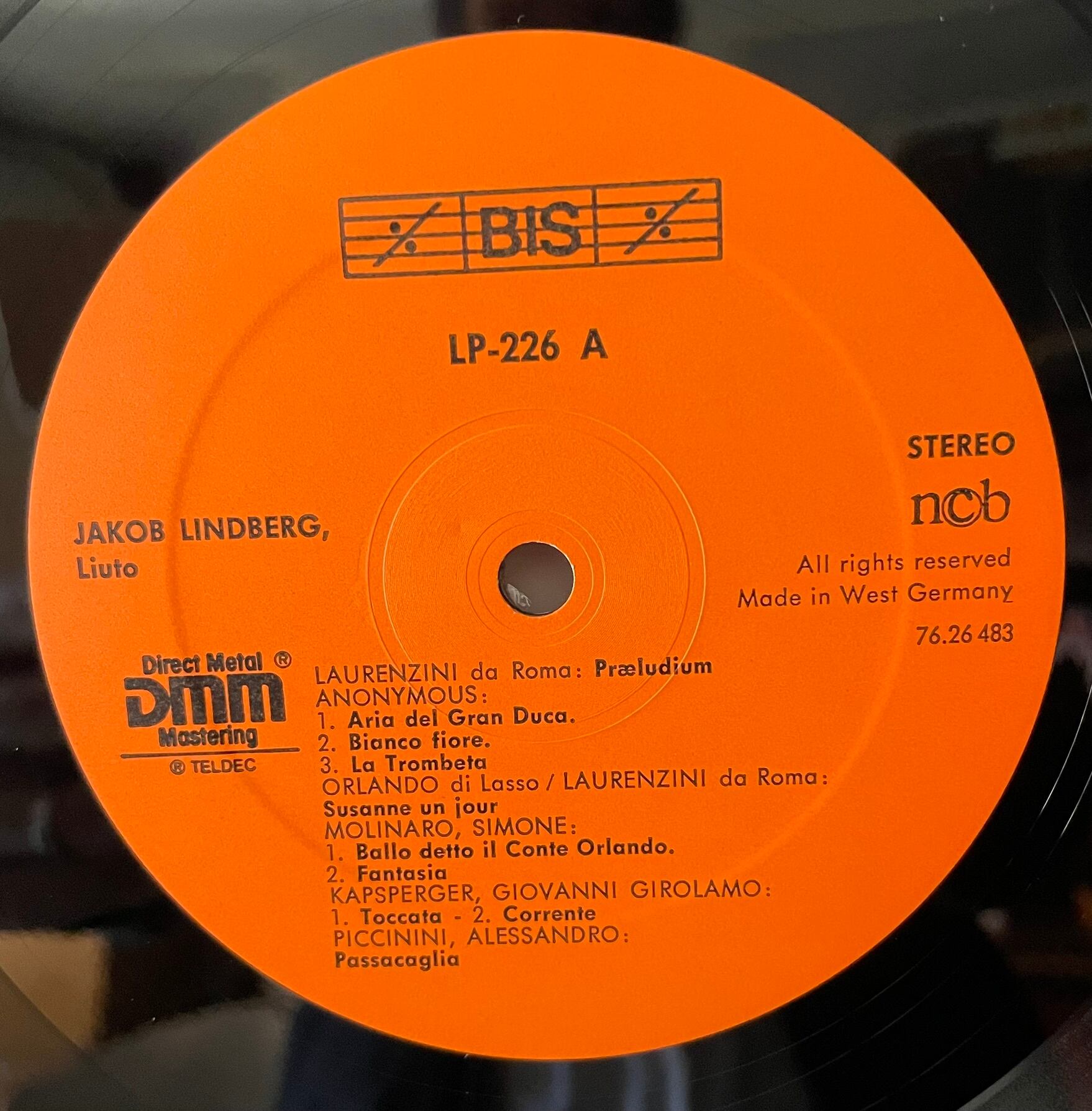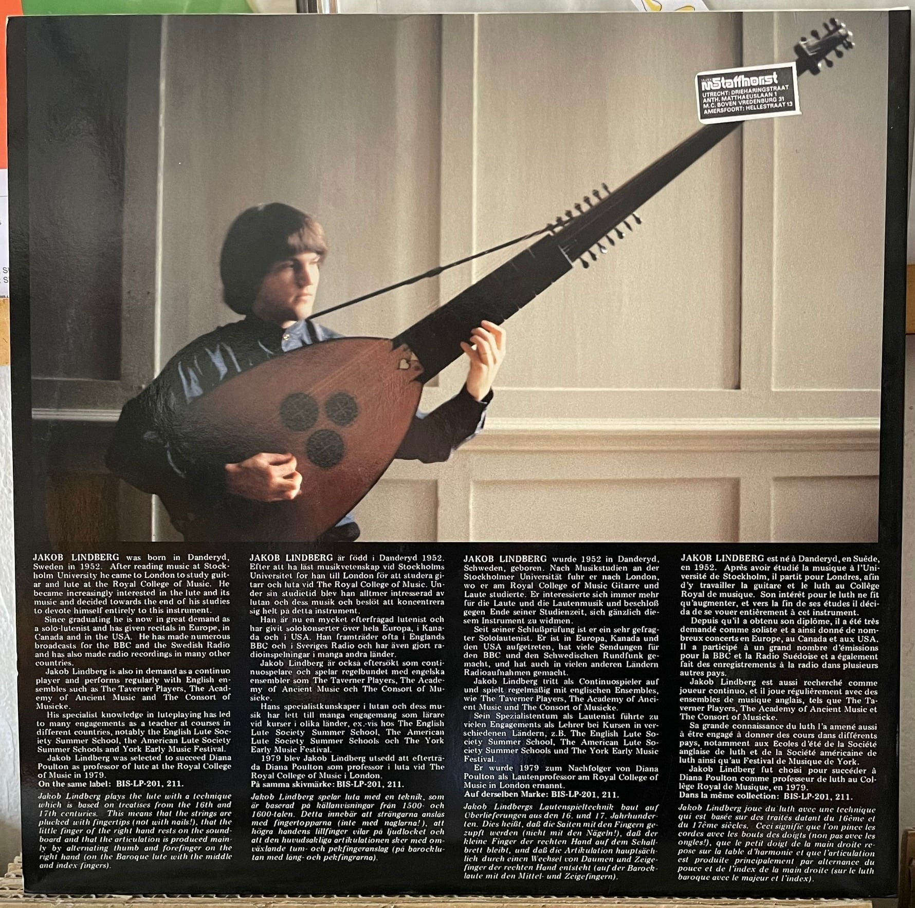 Jakob Lindberg "Italian Music For Lute & Chitarrone" LP