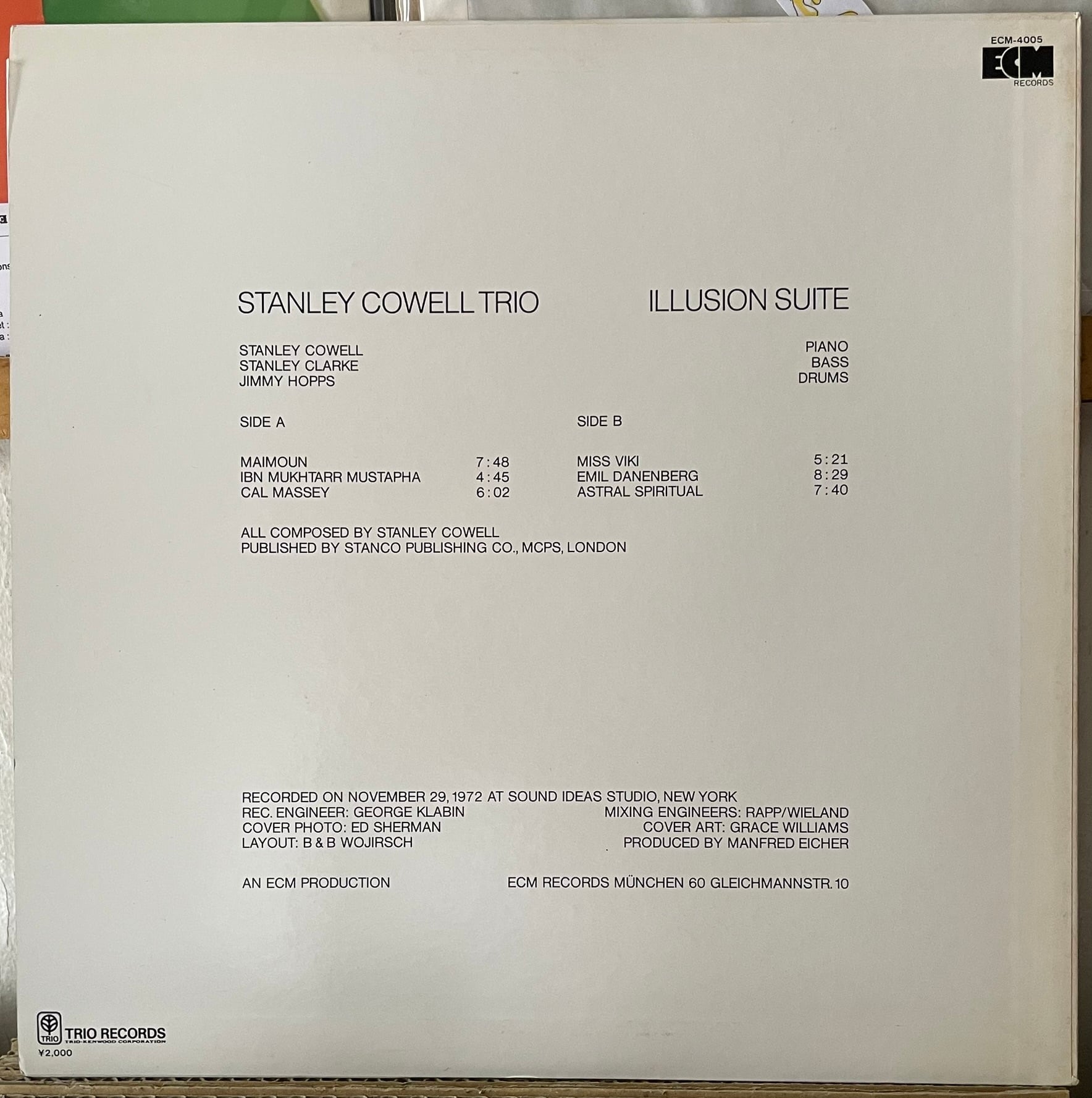 Stanley Cowell Trio "Illusion Suite" LP