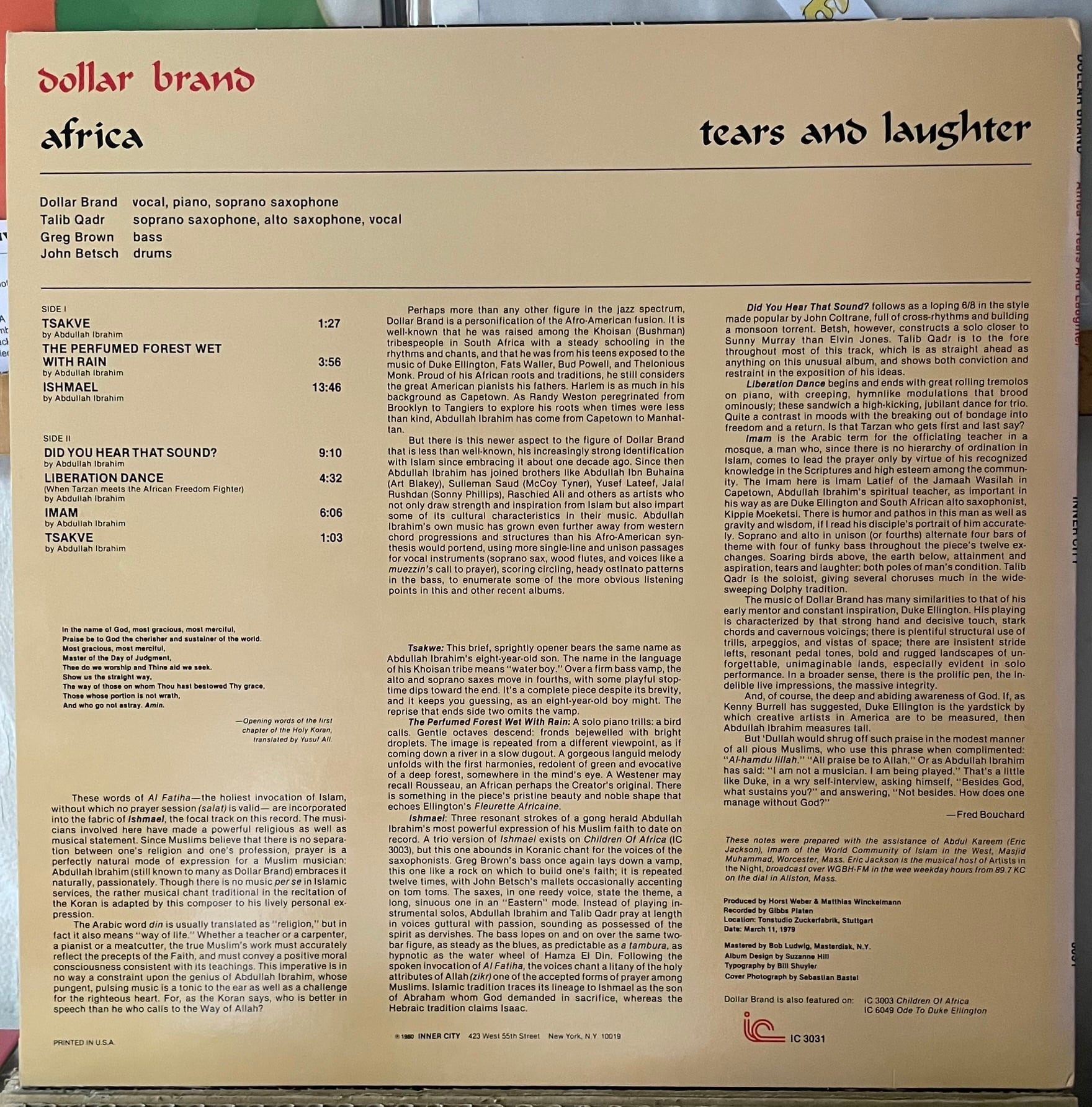 Dollar Brand "Africa - Tears And Laughter" LP