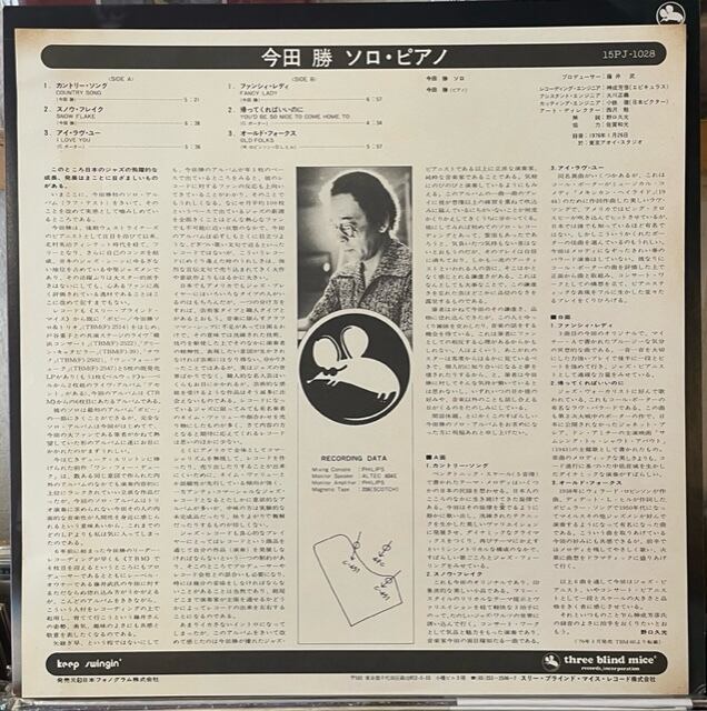 鍵盤奏者・今田勝・76年 ソロピアノ・アルバムです(79年後発盤)