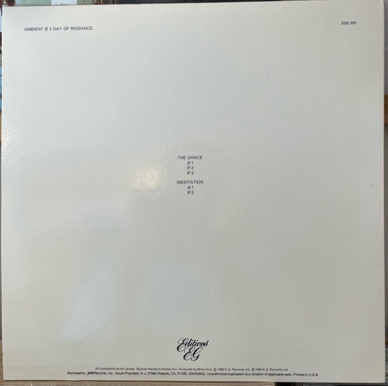 Laraaji - Brian Eno "Ambient 3 " LP