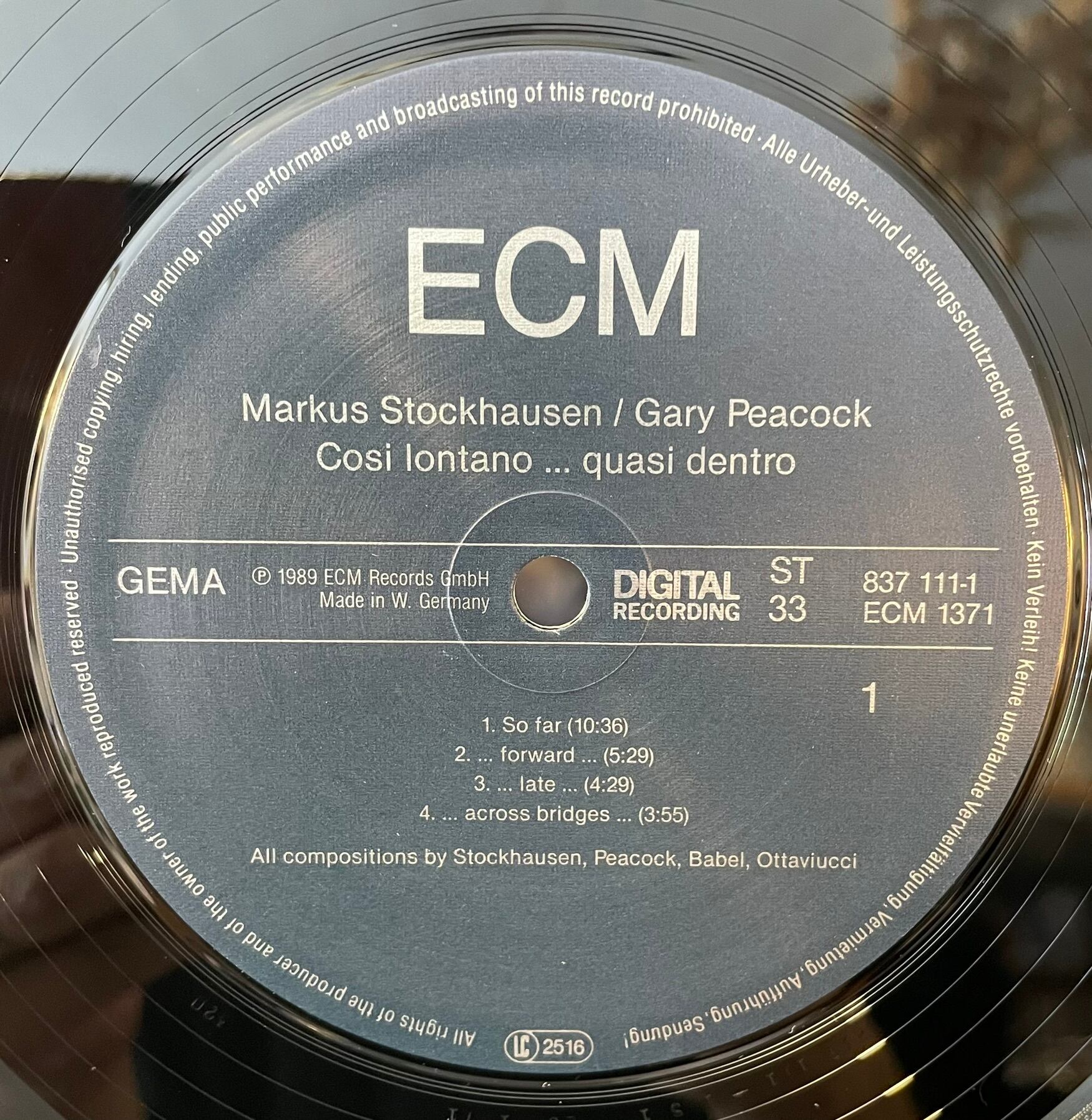Markus Stockhausen - Gary Peacock "Cosi Lontano...Quasi Dentro" LP
