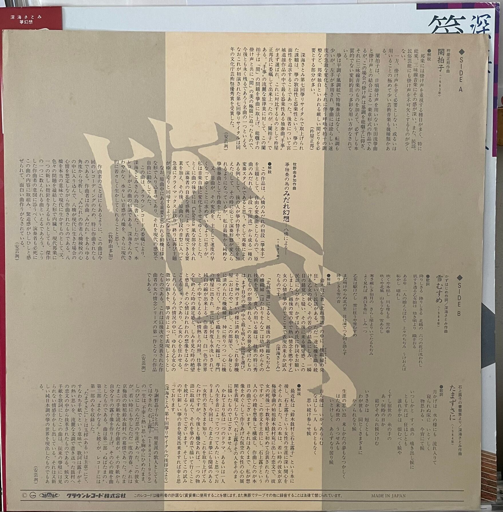 深海さとみ "箏幻想" LP