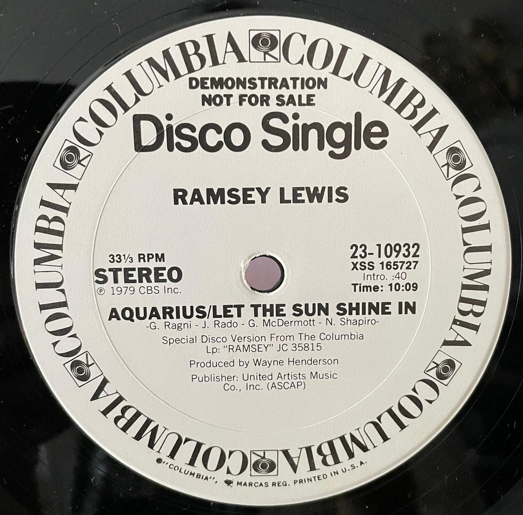 Ramsey Lewis "Aquarius/Let The Sun Shine" US PROMO 12"