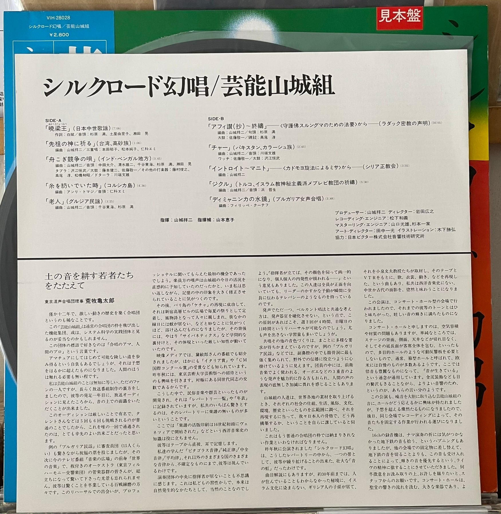 芸能山城組 "シルクロード幻唱" JAPANESE PROMO 見本盤 LP