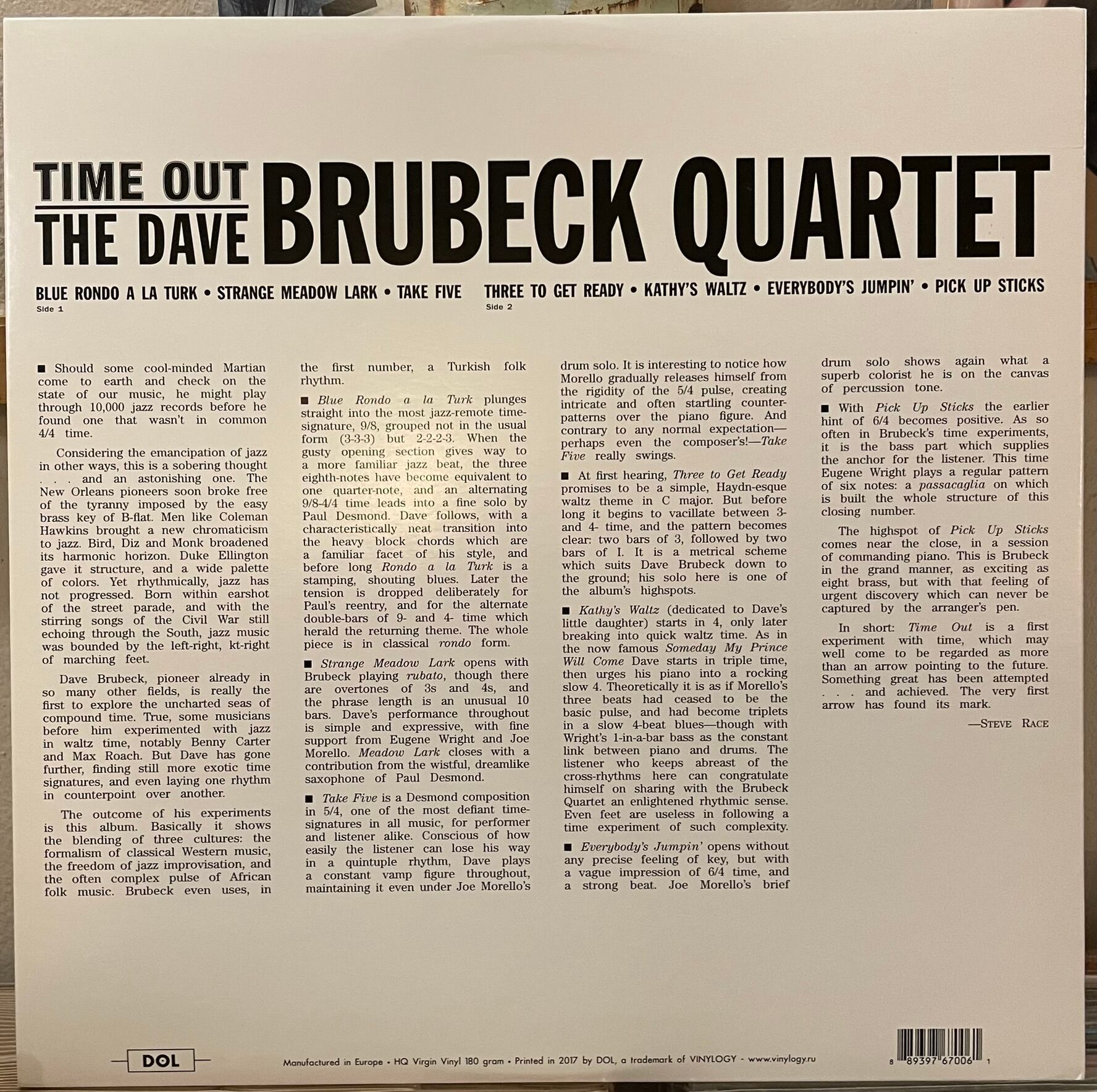 The Dave Brubeck Quartet "Time Out" Picture Disc 180g LP